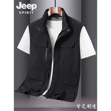 JEEP吉普多口袋運動馬甲男戶外工裝無袖坎肩馬夾外套攝影釣魚記者