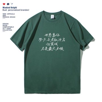 點我下載夏季文字印花短袖t恤男青少年純棉寬松休閑圓領半袖體恤衫