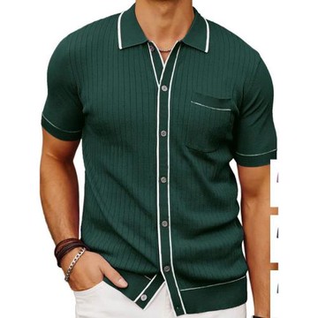 2025夏短袖時尚針織襯衫男休閑紐扣開衫上衣POLO衫 Men's T-Shirt