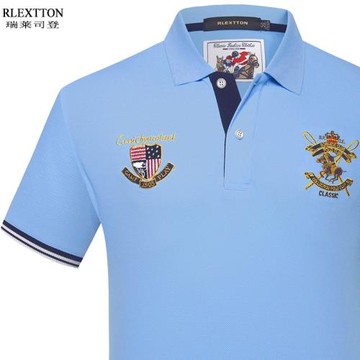 品牌男裝夏季短袖T恤男翻領POLO衫純棉高檔刺繡半袖上衣服淺藍色