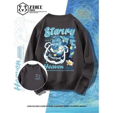 美式衛衣男春秋季無帽復古寬松大碼2025新款潮牌圓領男生外套長袖