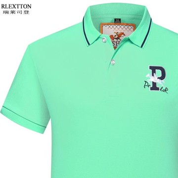 高檔短袖翻領T恤品牌男裝POLO衫有帶領上衣服全棉純棉綠色夏半袖