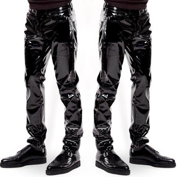 歐美大碼高光漆皮男士長褲酒吧夜店舞臺演出裝口袋直筒鏡面皮褲