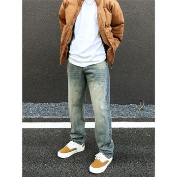 美式筒闊腿微喇中腰水洗做舊牛仔長褲 F21-SZ774044