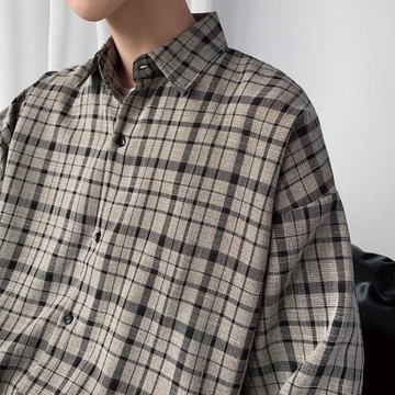 ins格子襯衫外套男潮夏季長袖潮牌慵懶風港味復古chic港風超火的