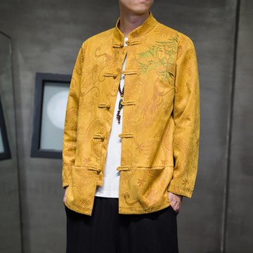 中式唐裝龍袍夾克男春秋季立領盤扣中國風外套民國男裝褂子中山裝