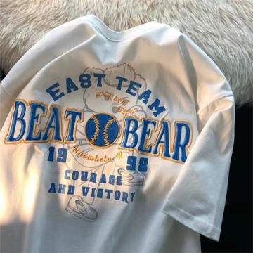 美式cityboy棒球字母刺繡t恤男夏季潮牌ins重磅短袖高街情侶上衣