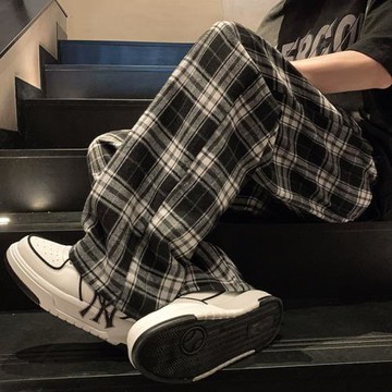 美式復古格子褲子男款春秋日系慵懶風潮流百搭直筒寬松黑白休閑褲