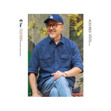 印度蓋染工藝純棉 男生襯衫 - 藤蔓海藍