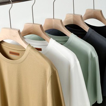 300g阿美咔嘰精梳棉重磅t恤男 圓領短袖打底衫基礎款潮牌一件代發