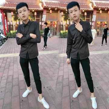 社會精神小伙小衫黑色襯衫發型師同款休閑襯衣外套男上衣百搭外衣