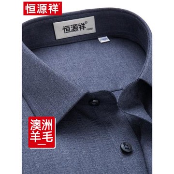 [高端可機洗]恒源祥羊毛襯衫男長袖秋冬新款商場同款保暖男士襯衣