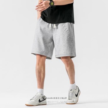 美式潮牌重磅短褲男夏季寬松休閑運動五分褲子男士直筒中褲衛褲潮