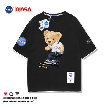 NASA聯名旗艦店小熊t恤男生潮牌寬松百搭上衣夏季純棉半袖情侶裝