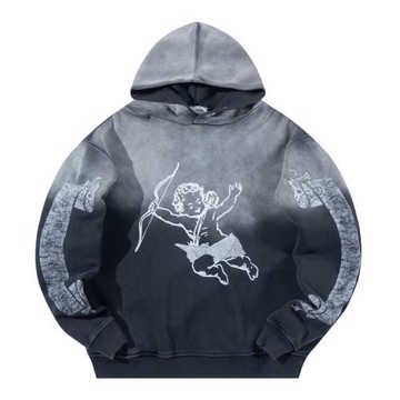 做舊破壞腰果花天使印花連帽衛衣