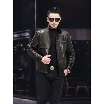 海寧真皮皮衣男山羊皮羽絨服皮夾克翻領短款修身時尚植鞣皮機車服