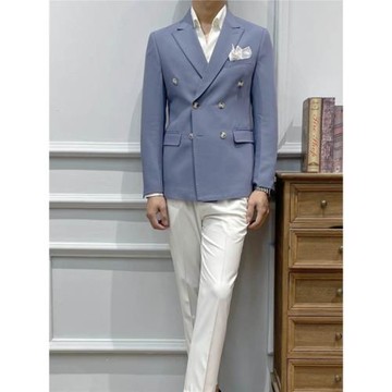 GH淺藍色西裝外套簡約便服雙排扣修身純棉男士商務韓版休閑西服男