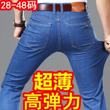 夏季超薄冰絲彈力牛仔褲男士寬松直筒高腰中青年柔軟長褲子男潮42