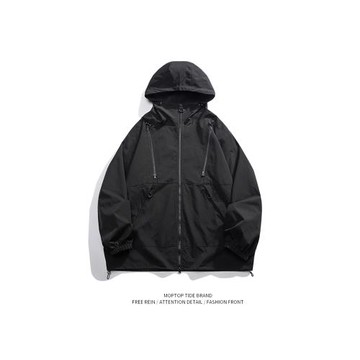 WH先生復古簡約純色連帽機能沖鋒衣外套男潮牌寬松山系連帽夾克