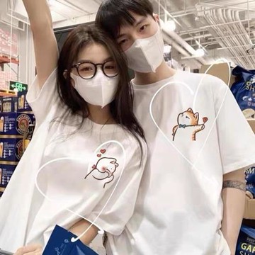2022夏季新款小眾設計感重磅厚實情侶裝圓領卡通簡約百搭情侶短袖