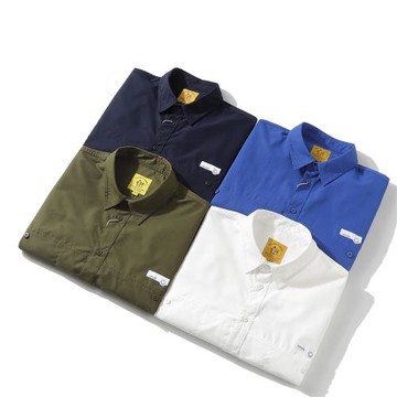 韓國單外貿男裝四季款男士休閑長袖襯衫麂皮貼肘補丁襯衣男襯衫潮
