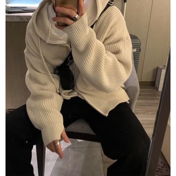 美式針織開衫毛衣外套男春秋新款復古慵懶風潮牌百搭純色拉鏈線衣