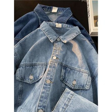 扎實好料 日單復古牛仔襯衫春秋寬松水洗翻領工裝襯衣休閑外套男