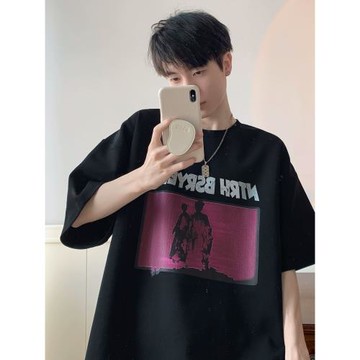 男款黑色概念性印花短袖T恤|8E9FJK3