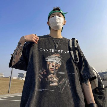 FOMK潮牌純棉美式暗黑系t恤短袖男夏季大碼寬松重磅模糊人影印花