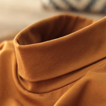 三本針高領打底衫男秋冬薄款上衣純棉彈力舒適棕色內搭t恤男長袖