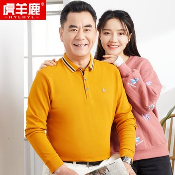 啄木鳥爸爸春秋衣上衣服中年男士長袖t恤純棉中老年人外穿打底衫