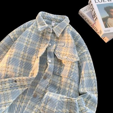 秋季新款日系小香風格子襯衫外套情侶復古寬松休閑夾克上衣男襯衣