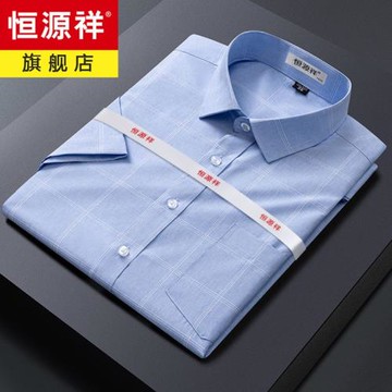 恒源祥短袖襯衫男夏季新款休閑格子大碼棉襯衣男士中老年薄款上衣