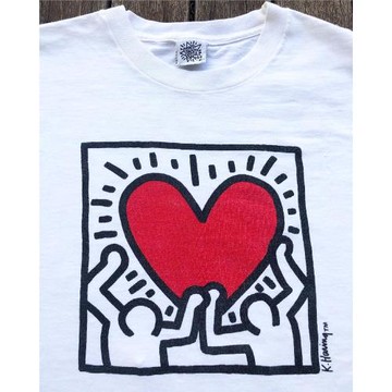 設計感藝術風短袖舉手凱斯哈林卡通印花T恤圓領休閑寬松純棉男女