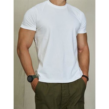 高端60S絲光新疆長絨棉純色圓領短袖T恤夏季男士打底240G重磅白