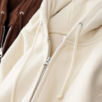 秋冬開衫衛衣男連帽純棉加絨拉鏈美式復古咖啡色米白休閑帽衫外套