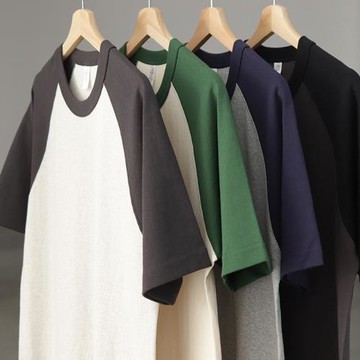 250g寬松款無縫桶織美式復古插肩拼色半袖圓領重磅純棉短袖T恤男