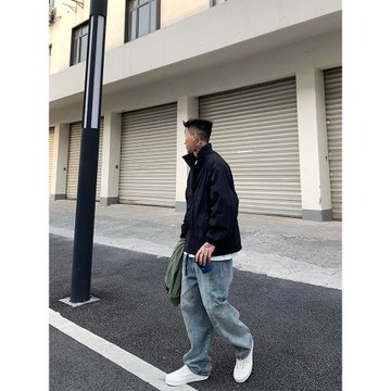 OXFREAK「原紗型面料半拉鏈」廓形立領黑色防曬服男寬松韓系外套