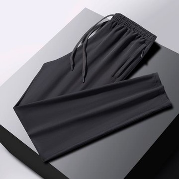 M-6XL大碼褲子男夏ins潮寬松速干透氣休閑長褲冰絲束腳九分褲薄款