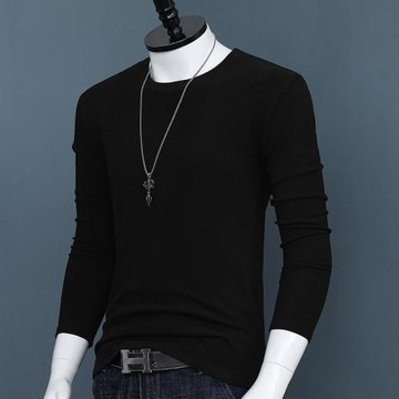 男士圓領雙面德絨長袖t恤秋冬季純色修身簡約打底衫青年大碼秋衣