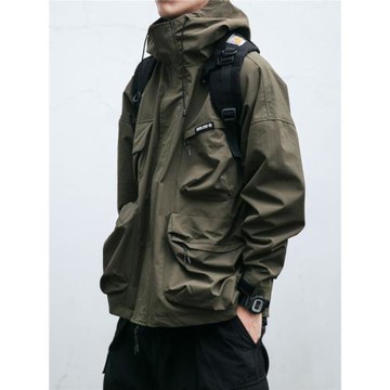 春秋日系復古獵裝夾克連帽沖鋒衣男寬松立體口袋機能工裝防風外套