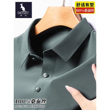 袋鼠男士100%桑蠶絲短袖t恤夏季商務休閑高端免燙抗皺翻領polo衫