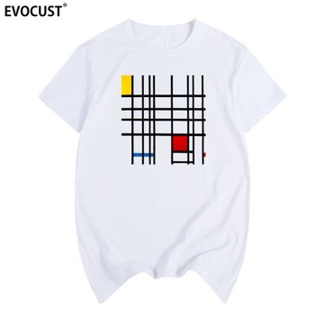 蒙德里安的格子畫夏季簡約紅黃藍的構成幾何抽象繪畫男女短袖T恤