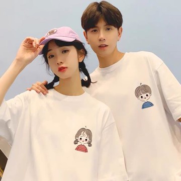 2022夏季新款小眾設計感重磅厚實情侶裝圓領卡通簡約百搭情侶短袖