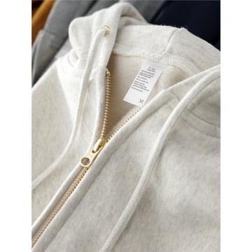 460G秋冬休閑加絨衛衣男日系復古連帽開衫外套拉鏈開襟運動帽衫男