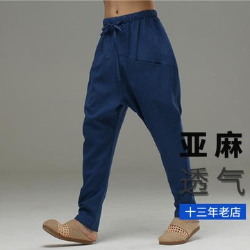 中式亞麻褲男低襠褲小腳哈倫褲棉麻褲子男寬松褲長褲男式休閑褲