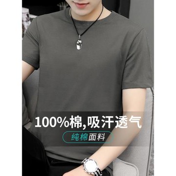 男士短袖t恤純棉圓領夏季男裝純色潮流簡約夏天新款半袖上衣服T