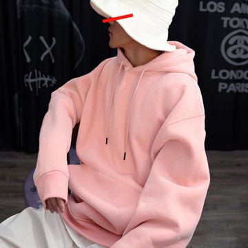 騷粉色帥氣連帽衫春季新款百搭ins衛衣男女寬松OVERSIZE外套潮牌