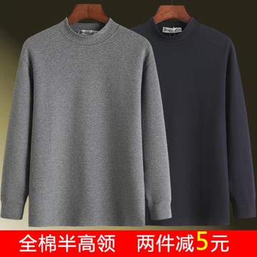 中年男裝純棉秋衣半高領打底衫寬松大碼中老年人秋冬爸爸長袖T恤
