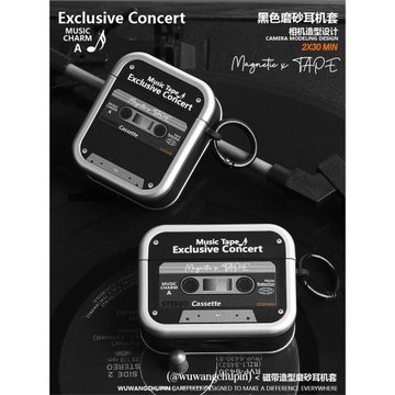 悟望初品 復古黑色音樂磁帶磨砂耳機殼原創設計適用蘋果AirPods 1/2/4代新3代軟殼Pro 3代無線藍牙防摔保護套